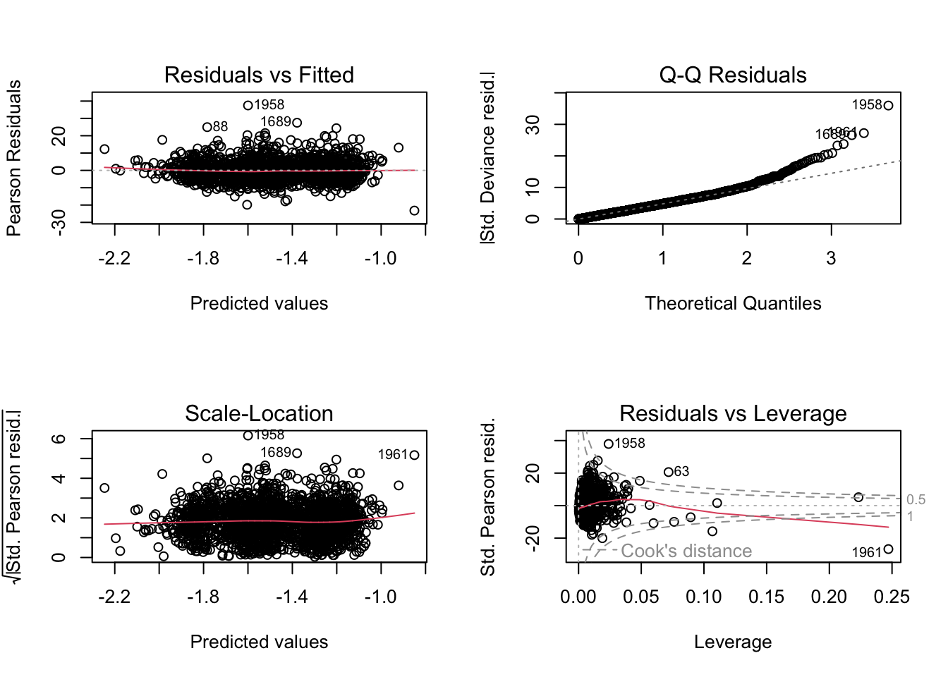 The diagnostics do not look too bad and we can retain the model for comparison with more detailed models.
