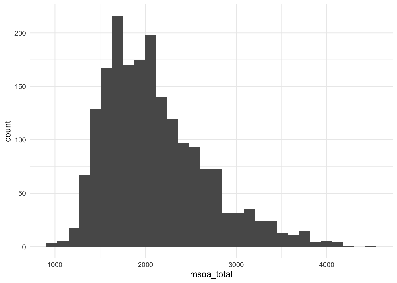 It goes without saying that this step means that Local Authorities and MSOAs need to be treated as random effects down the line (with appropriate heirarchy).
